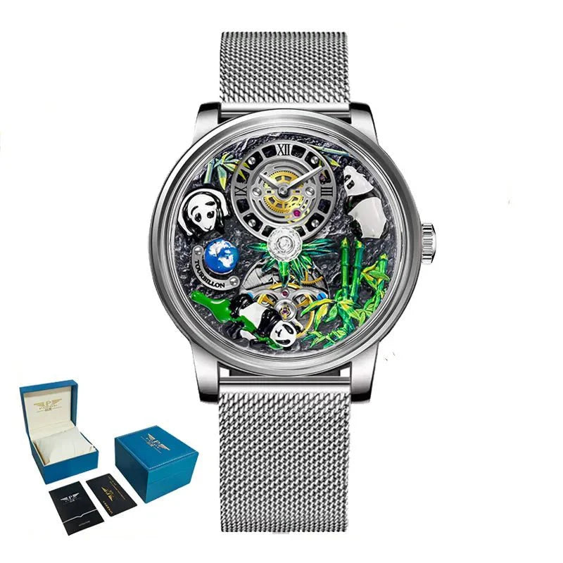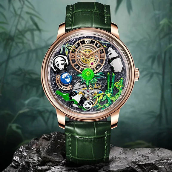 Introducing the Panda Paragon, a luxurious mechanical masterpiece designed for the discerning gentleman. Inspired by the serene beauty of bamboo and the graceful strength of the panda, this watch makes a bold statement of style and precision. Crafted from premium exclusive materials, every detail exudes opulence, making it look and feel several times more expensive than its actual price.